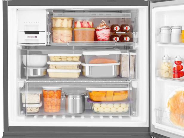 | Material | Plástico, metal,porta em aço Evox e laterais em aço pintado na cor cinza. Tecnologia Evox protege sua geladeira da ferrugem e corrosão com uma camada de zinco e uma película impermeabilizante aplicadas sobre o aço. | ||||||||||||||||