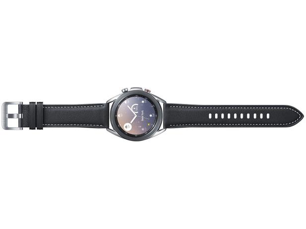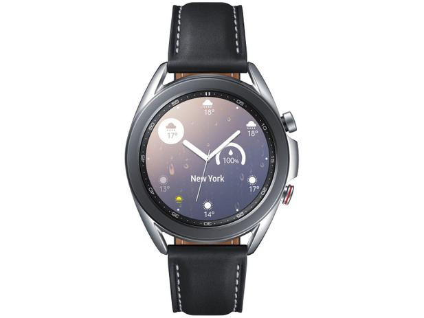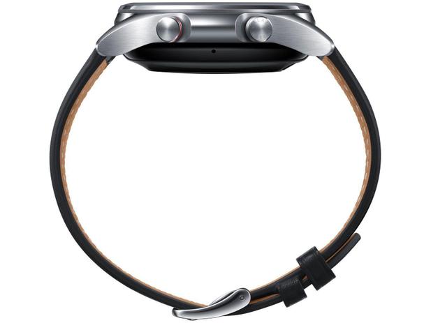 O Galaxy Watch3 LTE da Samsung tem um design clássico e refinado. Sua caixa de metal é feita com material premium em aço inoxidável, além de resistente seu formato proporciona conforto no pulso. Esse smartwatch possui caixa de 41mm e sua coroa giratória torna o acesso as funções e aplicações mais rápido e facilitado. É um produto ideal para quem precisar monitorar a saúde e bem estar de uma forma prática e facilitada. Além de uma série de funções avançadas para acompanhar a sua evolução nos treino e nos esportes. Possui conectividade em uma rede móvel 4G LTE, que lhe confere a versatilidade de uso independente do smartphone, não apenas para fazer chamadas telefônicas, mas para receber e responder suas mensagens a qualquer momento e em qualquer lugar. Ele ainda vem equipado com GPS que rastreia com maior precisão suas trilhas preferidas. Também está equipado com funções inovadoras que vão facilitar o seu dia-a-dia, seja no lazer ou no trabalho, como o controlador de câmera, controlador de músicas remoto, controle de PPT, função de pagamento móvel por meio do Samsung Pay e 8GB de memória interna. Sua pulseira preta em couro legítimo oferece visual natural e elegante.